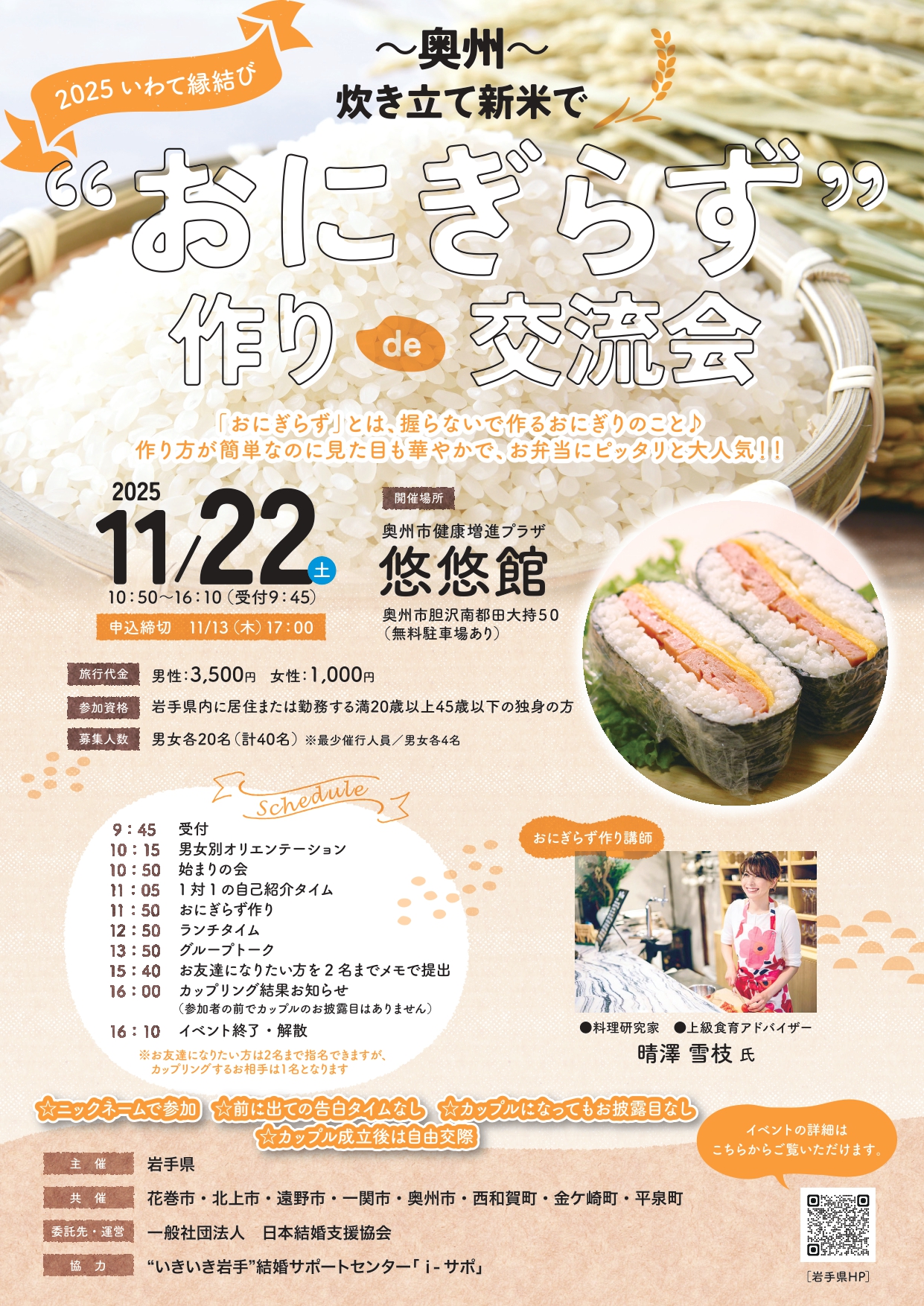 イベント概要 【岩手県主催】いわて縁結び ~奥州~炊き立て新米で”おにぎらず”作りde交流会