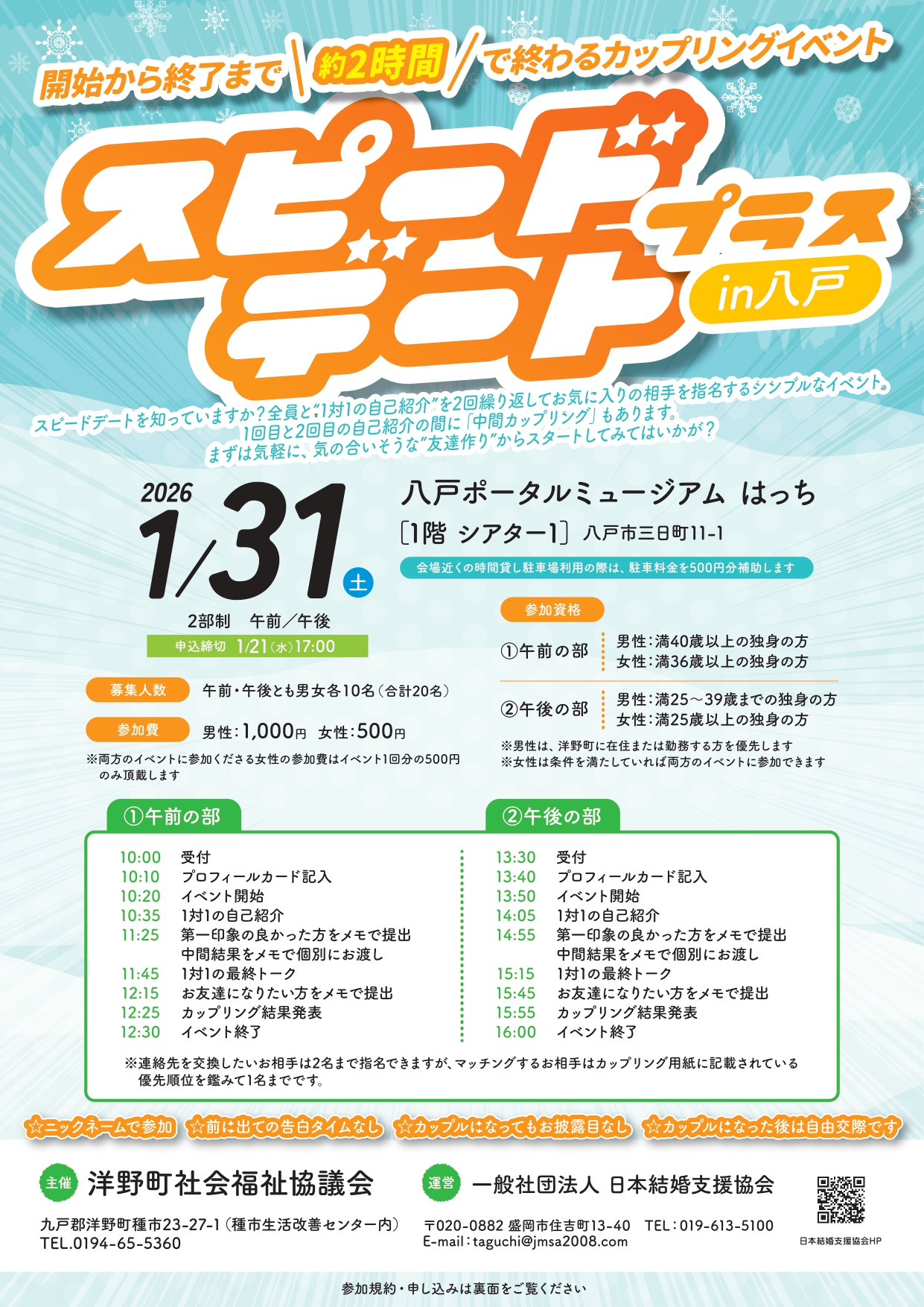イベント名 スピードデートプラスin八戸 (午前の部)