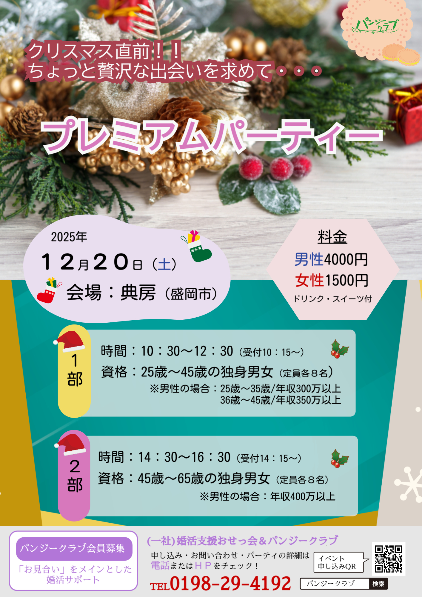 問い合わせ先 一般社団法人 婚活支援おせっ会【パンジークラブ】 〒028-0114 花巻市東和町土沢6-20-1 TEL 0198-29-4192(営業時間10:00~17:00)FAX 0198-29-4193 E-mail osekkai@pansy-club.jp  定休日:水曜日